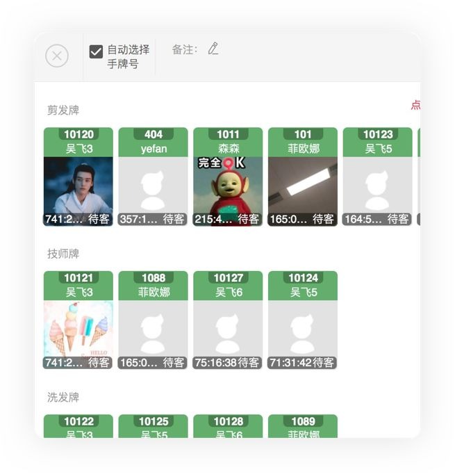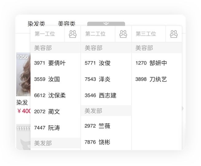 ✔ 开单选择服务员工页面、轮牌页面只显示勾选部门的员工